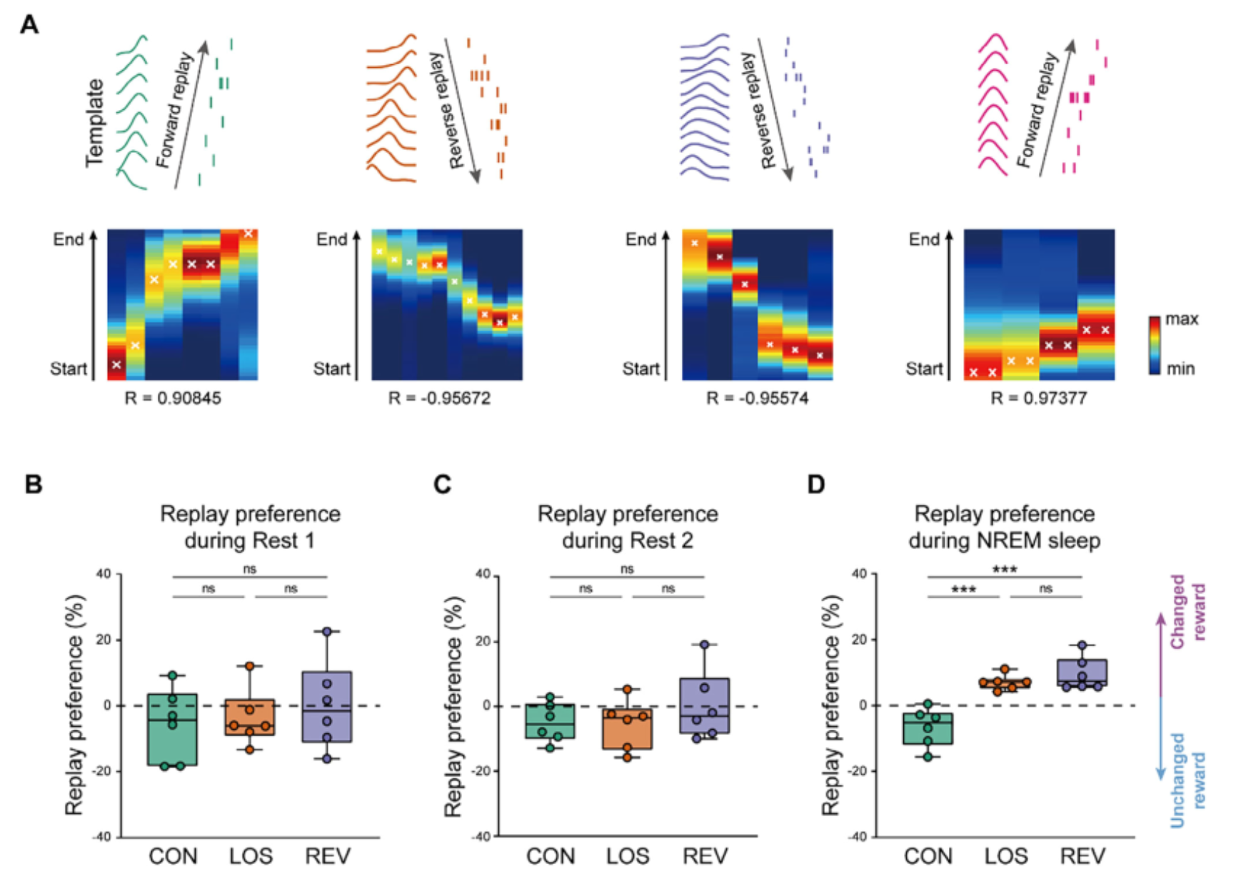 在神经机制上,研究重点分析了海马位置细胞的“重放”(replay)活动。结果显示: