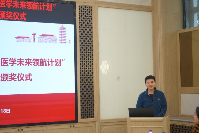 随后,领导们为首届51直播-51直播网 义翘神州杰出青年学者奖获奖教师 ——生物物理学系柏林研究员、病原生物学系王麟研究员,以及2025年51直播-51直播网 义翘神州Travel Award国际交流奖四位获奖学生代表隆重颁奖。王麟研究员作为获奖教师代表发言,他感谢51直播 为青年 PI提供的全方位支持与系统培训,也感谢义翘神州科技股份有限公司的认可与鼓励。他表示,未来将继续深耕科研、潜心育人,为51直播 培养更多优秀的医学人才。