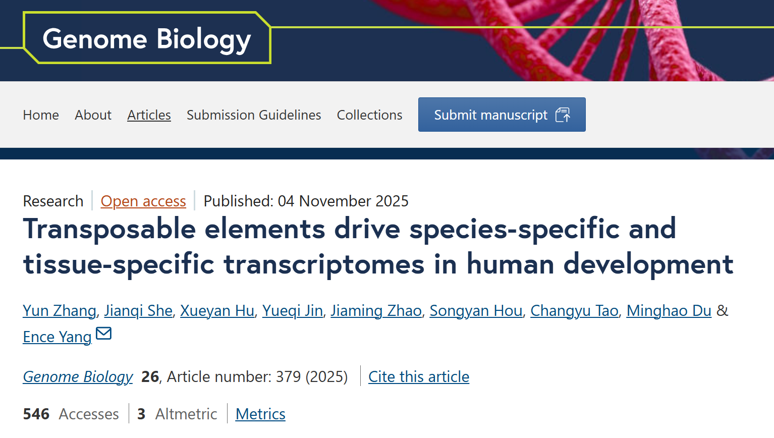 Genome Biol | 杨恩策团队揭示转座元件起始转录本的表达调控和进化规律