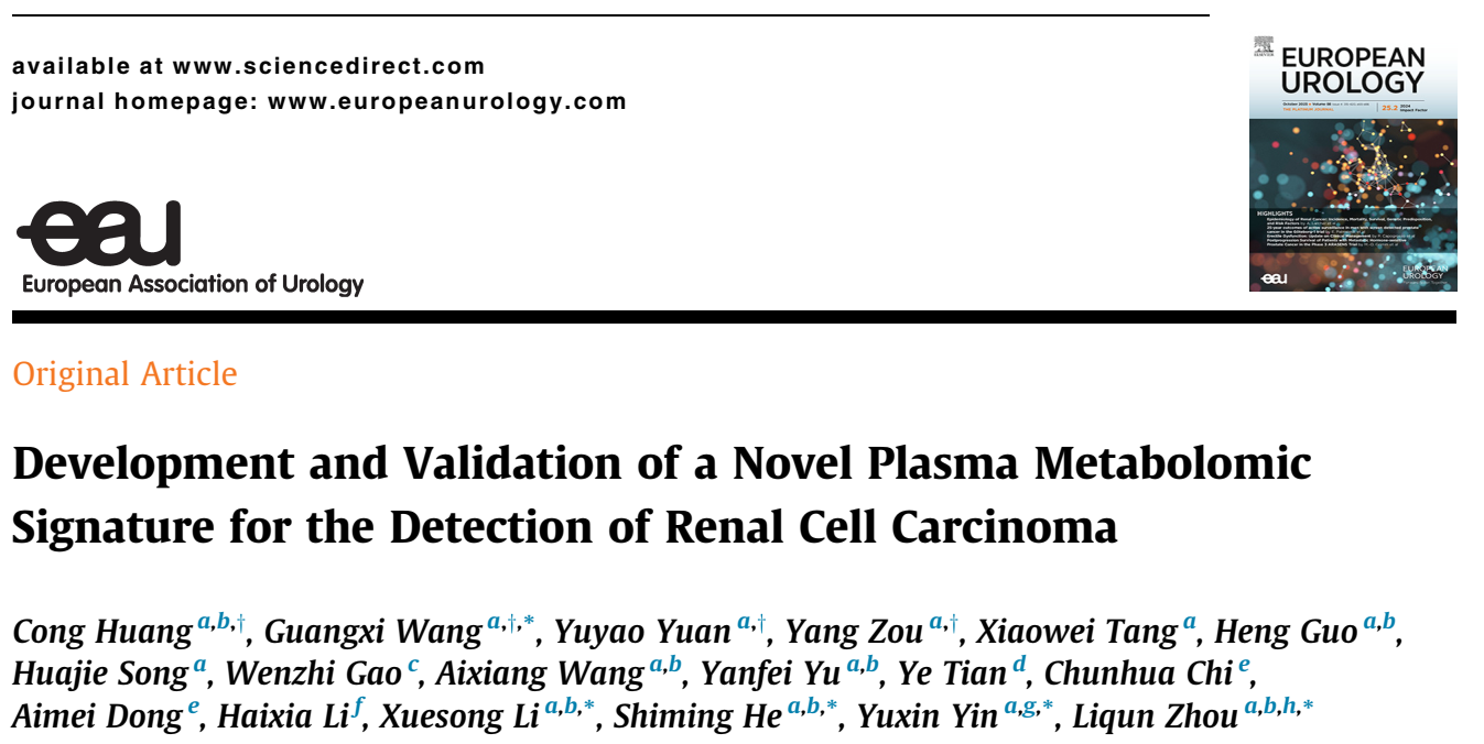 European Urology |尹玉新/王光熙团队与北京大学第一医院团队合作开发AI辅助代谢组学肾癌检测新方法